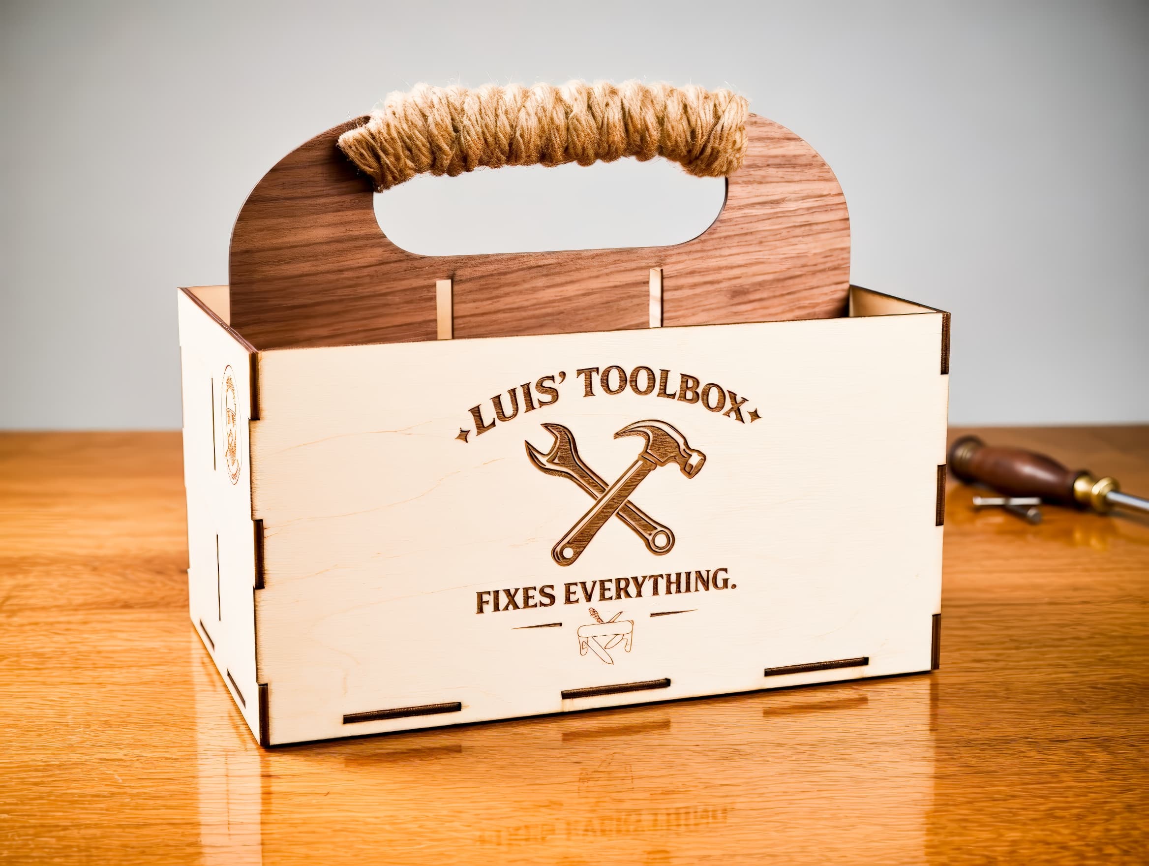 Nuestra Toolbox Personalizada es un regalo que combina utilidad y emoción. Fabricada en abedul báltico con asa de nogal y cuerda natural, cada caja se graba con el nombre del destinatario, su profesión o pasión, y un diseño temático único. Disponible en dos estilos: Classic (herramientas, oficios tradicionales) y Geek (desarrollo, tecnología, gaming).